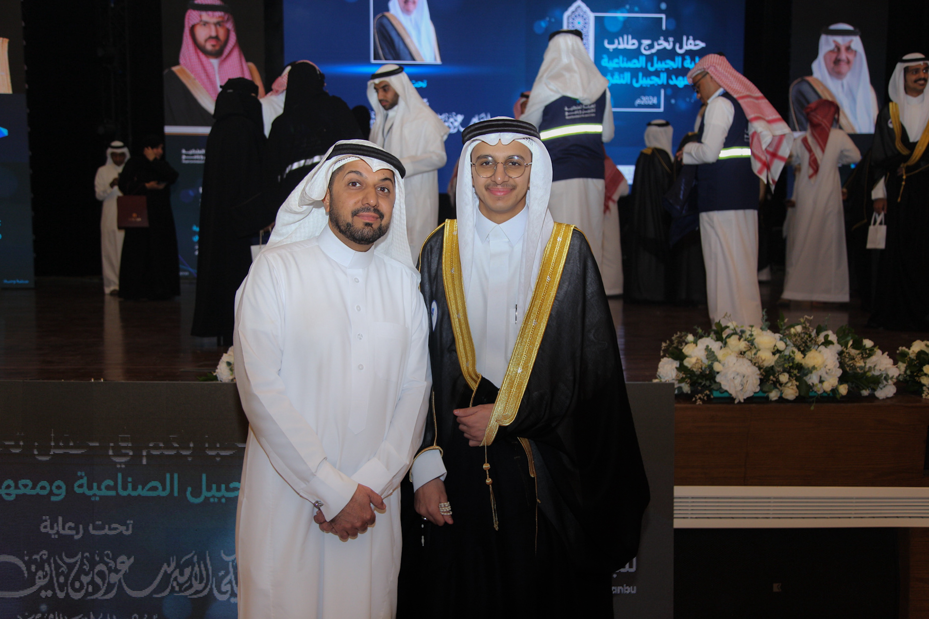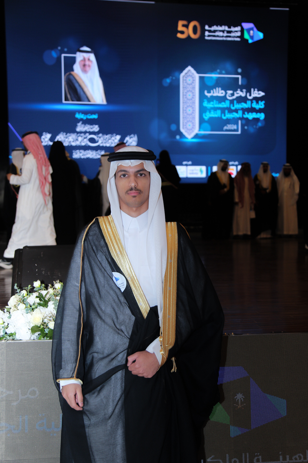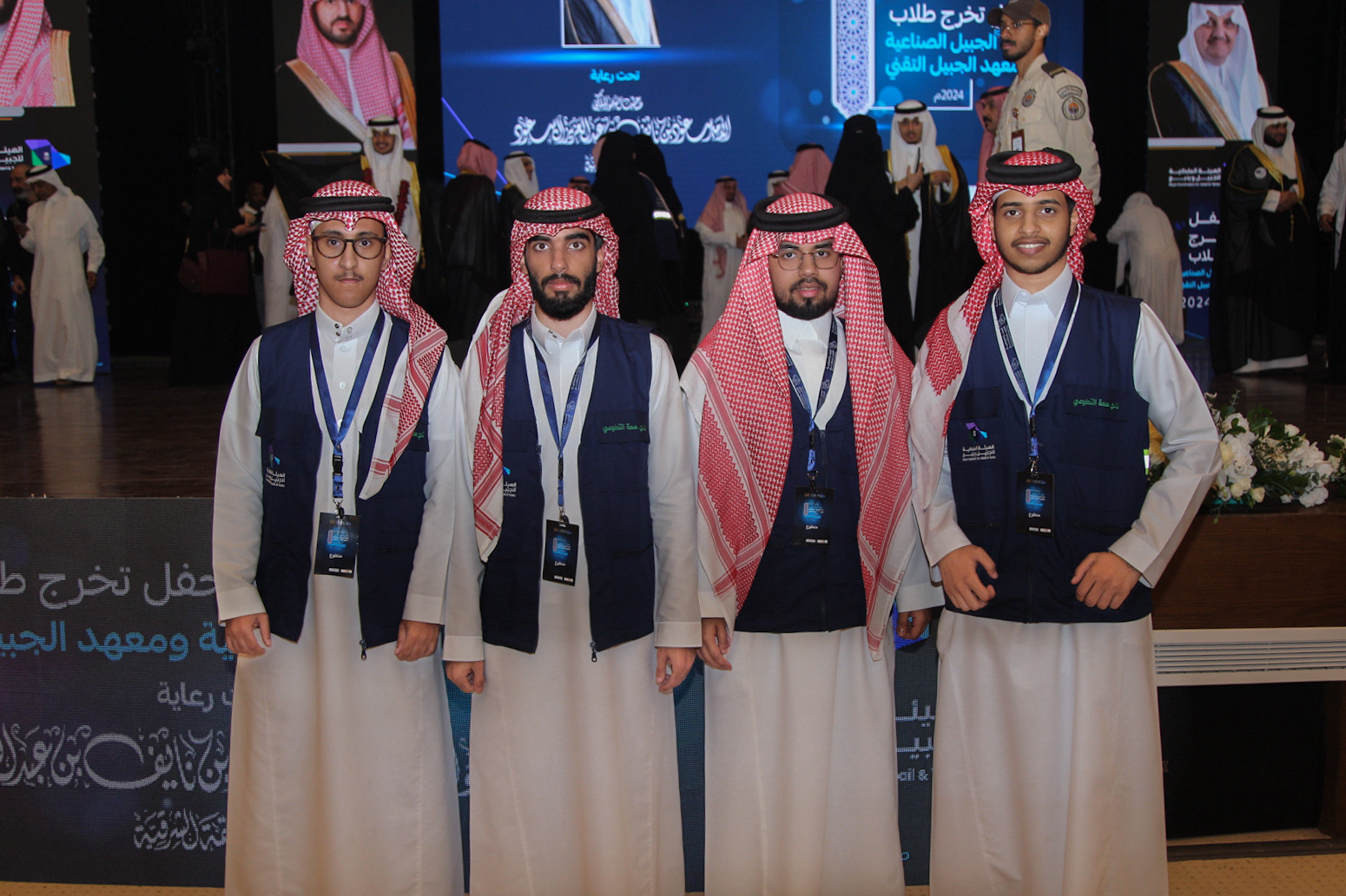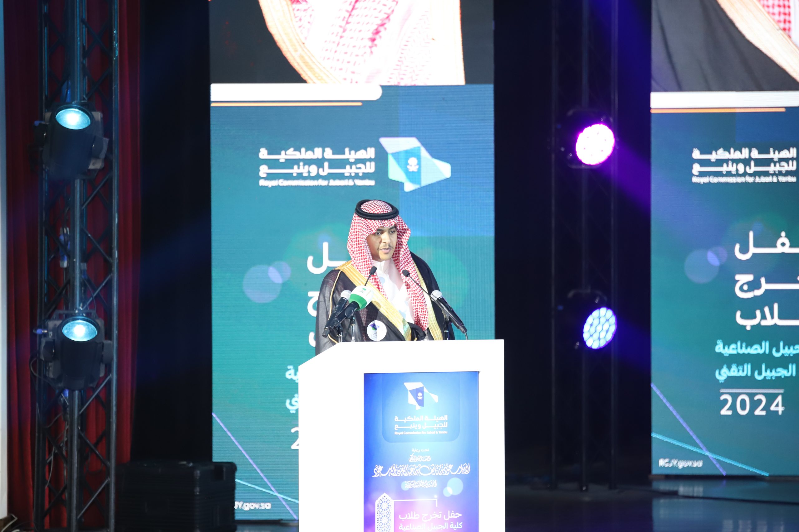 ورعى صاحب السمو الملكي الأمير سعود بن نايف بن عبد العزيز أمير الشرقية مساء الأحد حفل تخرج طلاب كلية الجبيل الصناعية ومعهد الجبيل التقني 2024م والبالغ عددهم (2893) خريج بحضور معالي وزير الصناعة والثروة المعدنية رئيس مجلس إدارة الهيئة الملكية للجبيل وينبع الأستاذ بندر بن إبراهيم الخريف ومعالي رئيس الهيئة الملكية للجبيل وينبع المهندس خالد بن محمد السالم، بمسرح المدينة الجامعية بمدينة الجبيل الصناعية.