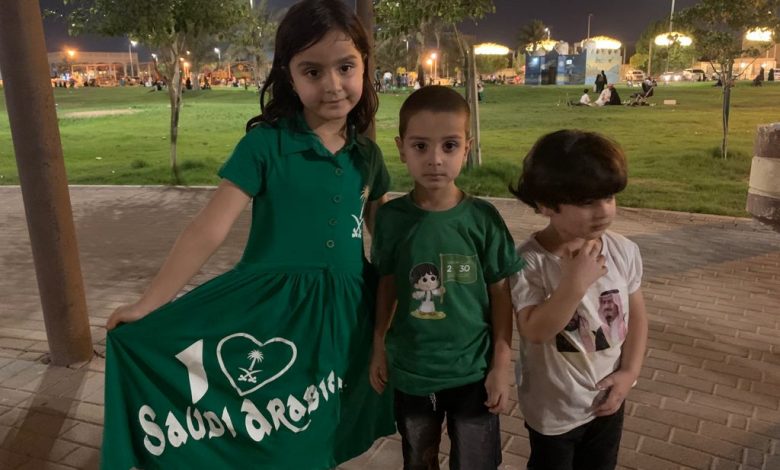 حديقة السلام وزوارها يتزينون باللون الأخضر احتفالاً بيوم الوطن