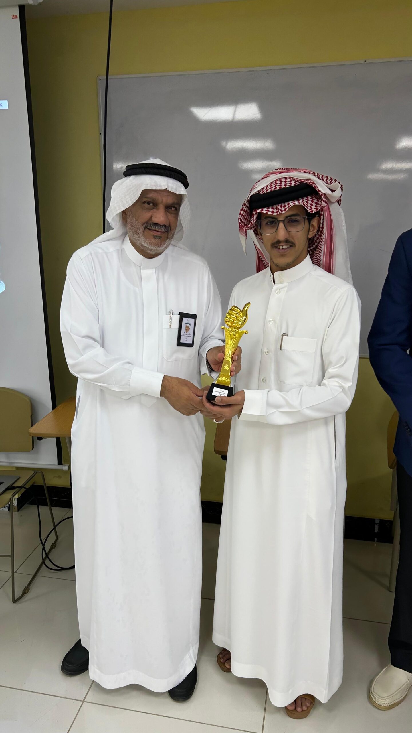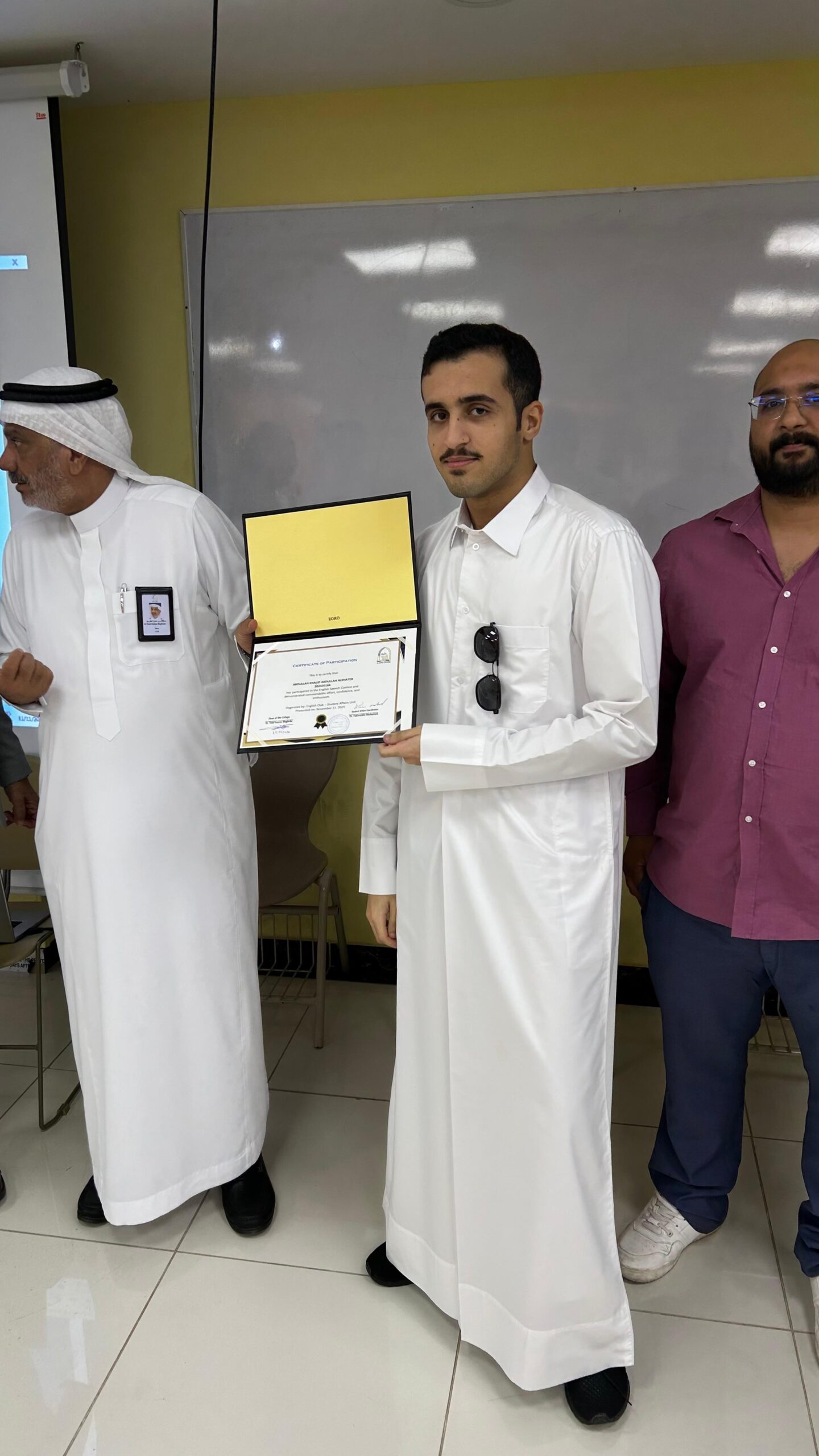 كما قام سعادة عميد الكلية الدكتور طلال بن حمزة مغربي بتكريم الفائزين وتسليمهم الجوائز وشهادات التقدير، مثمنًا الجهود المبذولة من نادي اللغة الإنجليزية ووحدة شؤون الطلاب في إنجاح هذه الفعالية المميزة.