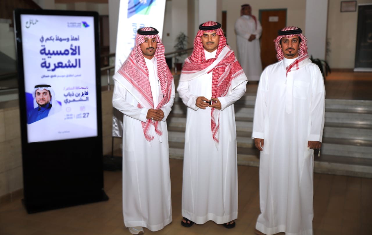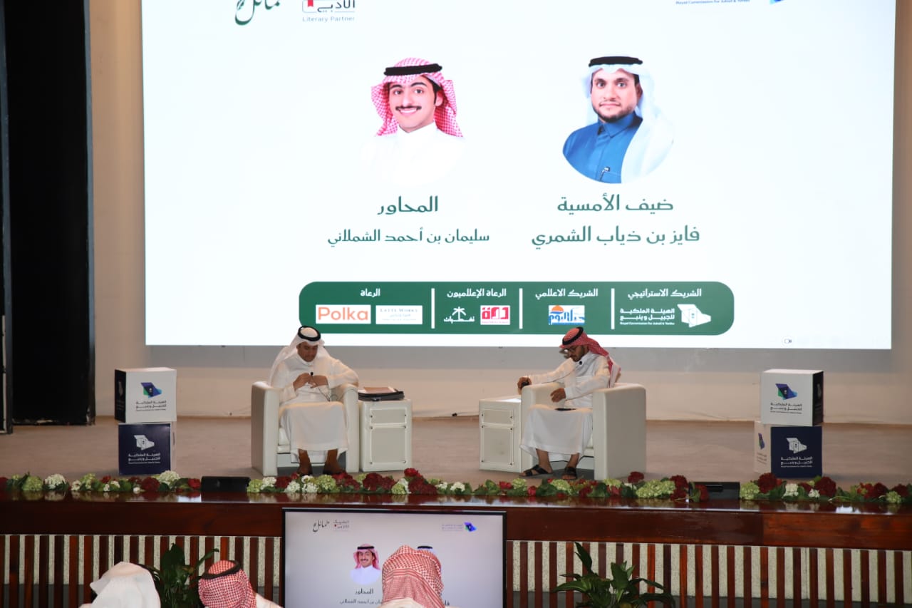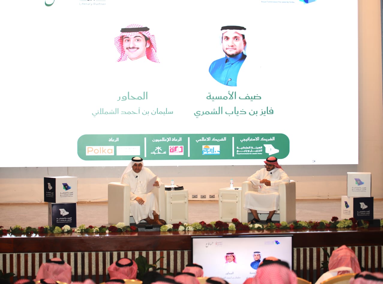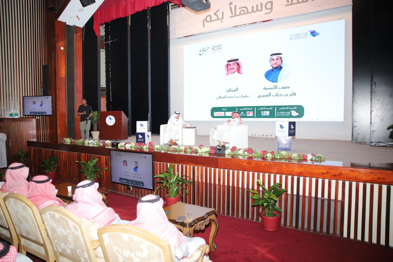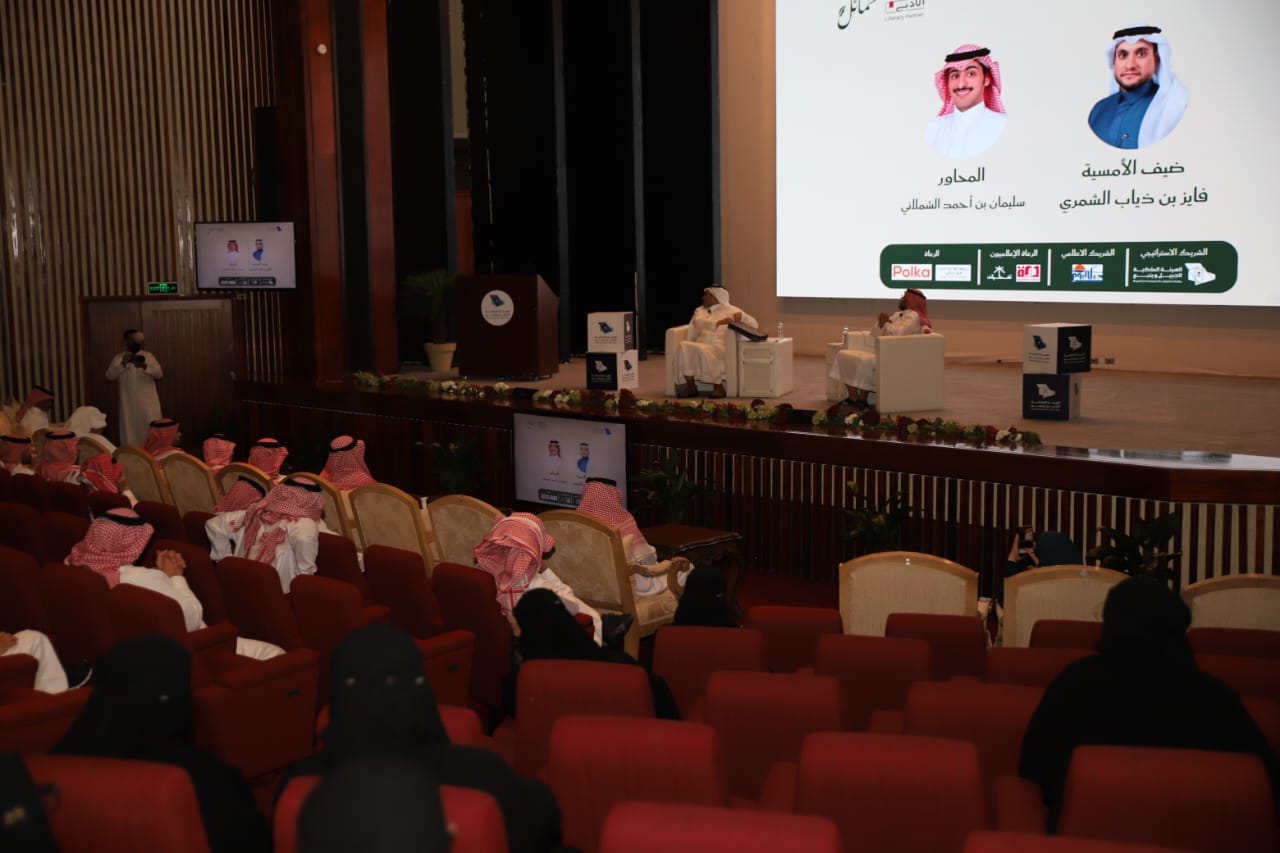 وتألق في المنصة الشاعر والأديب الأستاذ فايز ذياب الذي قدّم مجموعة من قصائده وسط تفاعل كبير من الجمهور، فيما أدار الحوار الأستاذ سليمان الشملاني الذي أضفى على الأمسية بعدًا معرفيًا وثقافيًا من خلال نقاشات ثرية حول التجارب الشعرية ومسيرة الإبداع.