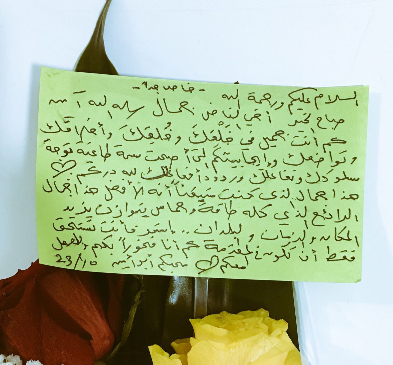 فلم يكتف مدير أعلى إدارة التطوير المستمر بشركة سابك الأستاذ عبدالله الشنقيطي بالموافقة على الإجازة ودعم الموظف معنوياً بالكلمات المشجعة بل حضر إلى منزل الموظف حاملاً معه باقة من الورد مع عبارات تشجيعية تساهم في تعزيز علاقة الموظف بالشركة.