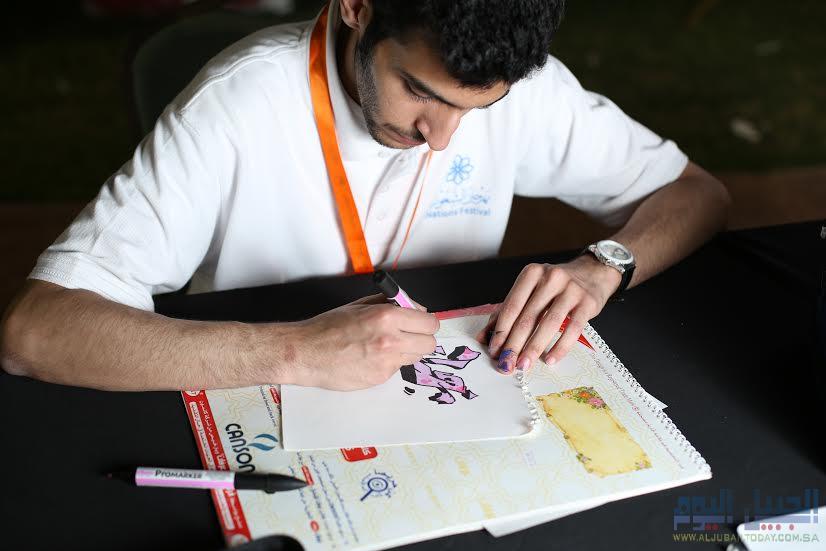 الفن الجرافيتي يقدم مواهبه بمهرجان الشعوب إقبال و إنبهار بالرسومات المميزة من قبل زوار المهرجان , صحيفة ” الجبيل اليوم” التقت مع الرسام الجرافيتي ” منصور الزهيري ”