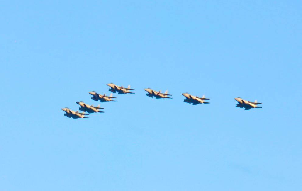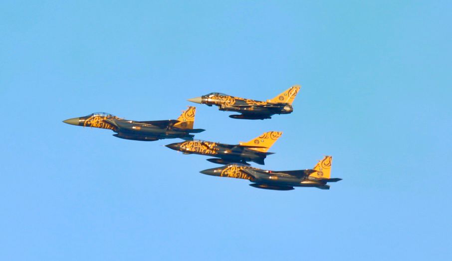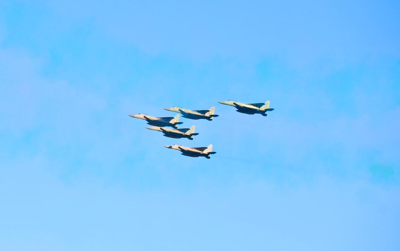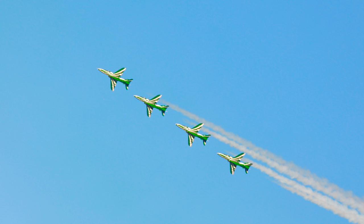 وقدّمت تشكيلات من طائرات القوات الجوية عروضًا متنوعة تعبيرًا واحتفاءً بهذه المناسبة الغالية.
