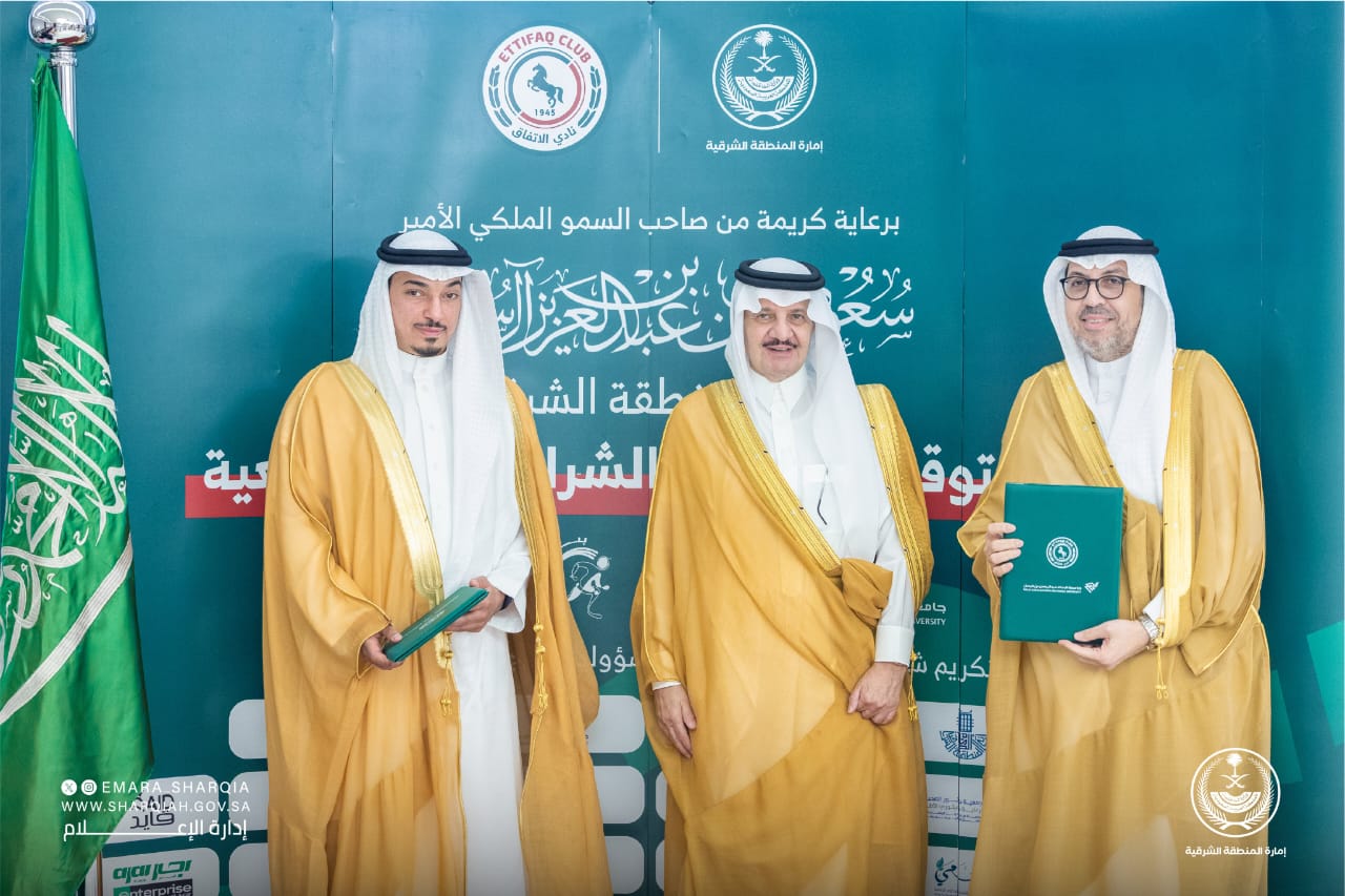 وشهد سمو أمير المنطقة الشرقية توقيع عدد من الاتفاقيات المجتمعية، شملت اتفاقية تعاون بين نادي الاتفاق وجامعة الإمام عبدالرحمن بن فيصل، واتفاقية مع جمعية بتور الصحية لرعاية مبتوري الأطراف.