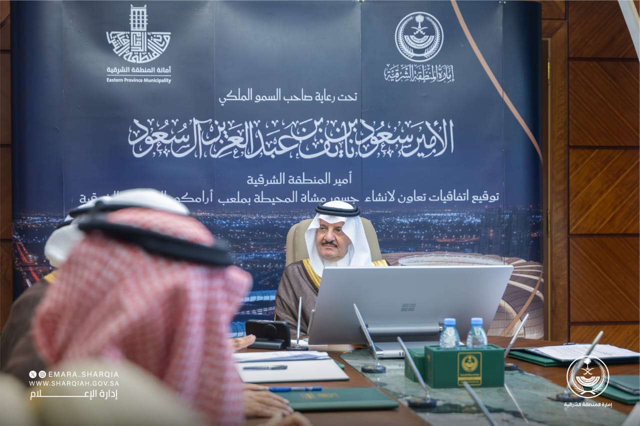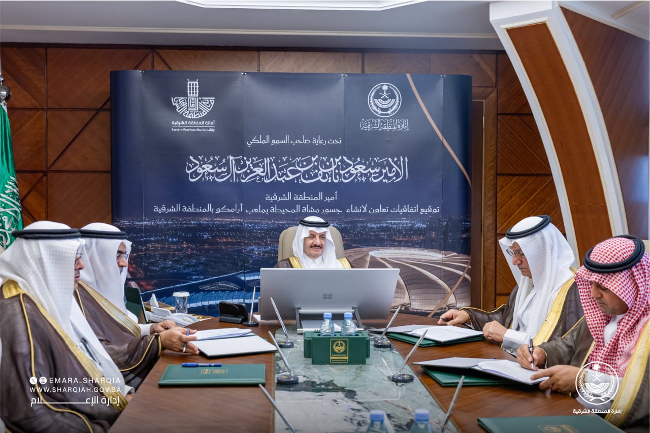 شهد صاحب السمو الملكي الأمير سعود بن نايف بن عبدالعزيز أمير المنطقة الشرقية بمكتبه اليوم، توقيع اتفاقيتين لحقوق التسمية مع القطاع الخاص، لإنشاء وصيانة جسور للمشاة تربط ملعب أرامكو السعودية بالأحياء المجاورة، ذلك ضمن مبادرات أمانة المنطقة الشرقية لتعزيز جودة الحياة وتحسين البنية التحتية الحضرية.
