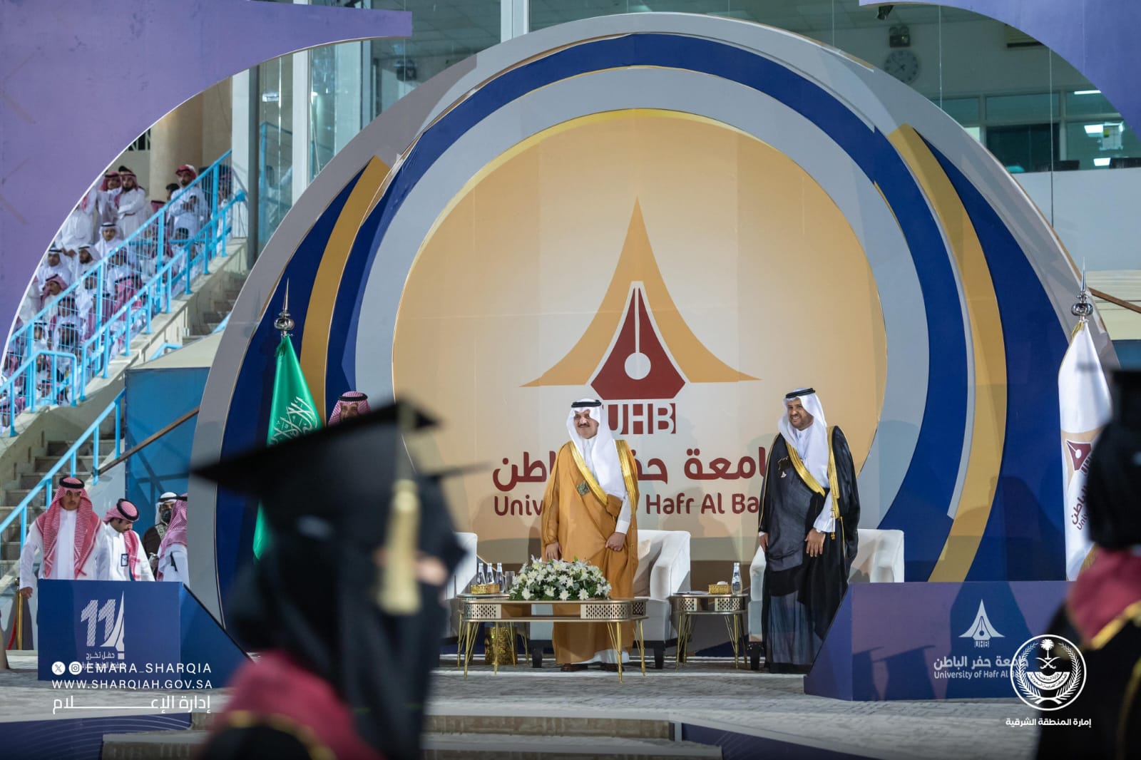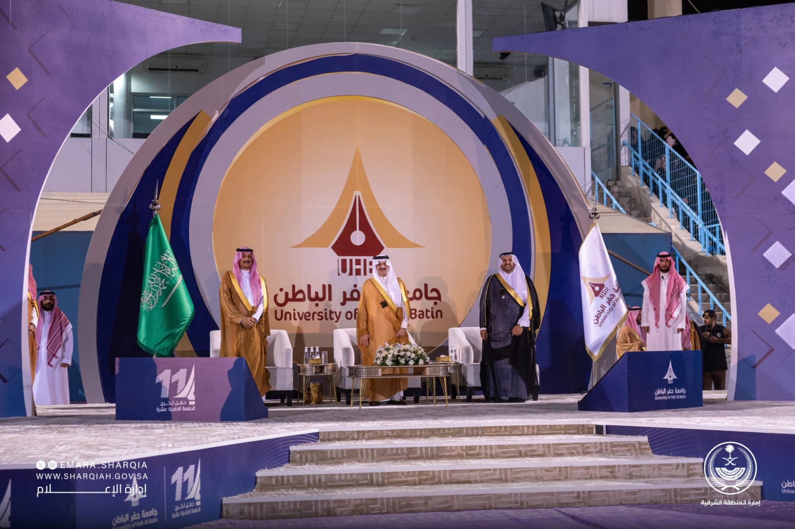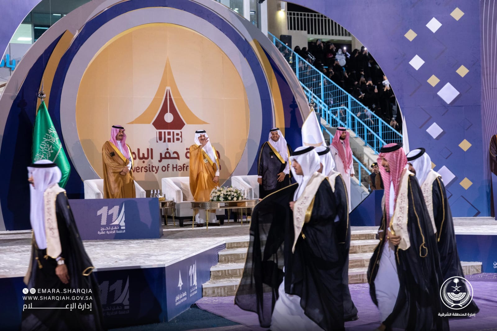 رعى صاحب السمو الملكي الأمير سعود بن نايف بن عبدالعزيز أمير المنطقة الشرقية، بحضور صاحب السمو الأمير عبدالرحمن بن عبدالله بن فيصل محافظ حفر الباطن مساء الأربعاء، حفل تخريج الدفعة الحادية عشرة من طلاب وطالبات الجامعة، البالغ عددهم (4966) طالبًا وطالبة، وذلك على ملعب نادي الباطن.