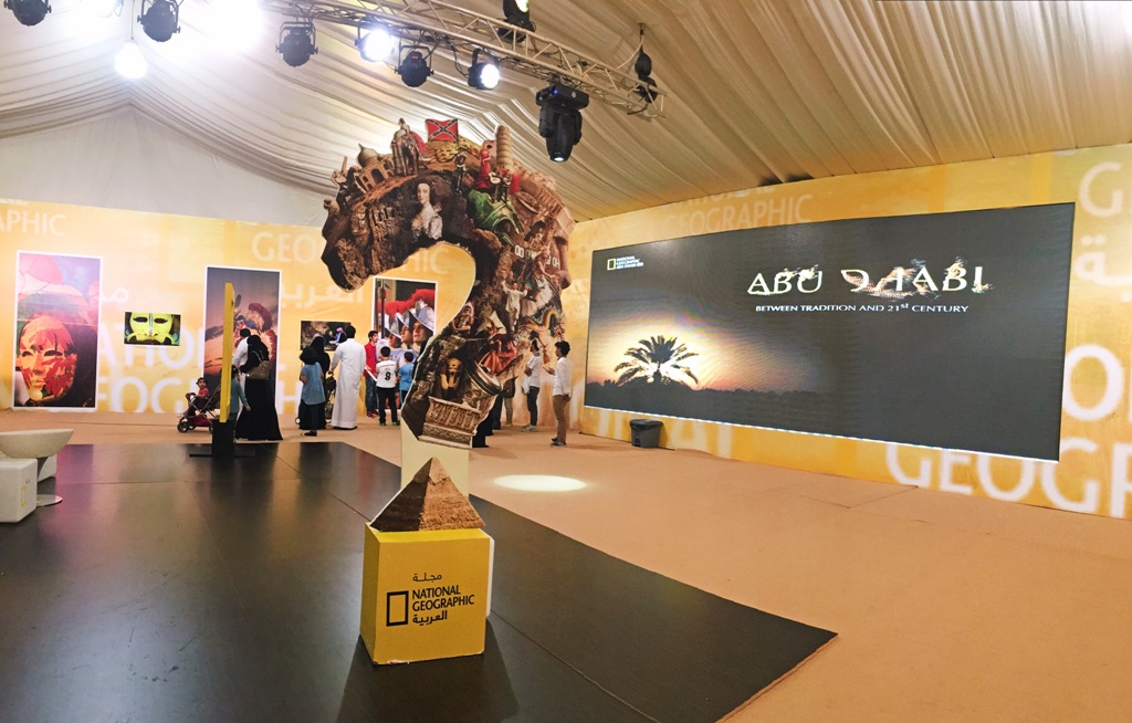 وتميزت خيمة ” ناشيونال جيوغرافيك” بالتركيز في عروضها المصاحبة للمهرجان على الجوانب التراثية لشبه الجزيرة العربية بالإضافة الى التعريف عن ثقافة العديد من بلدان العالم بجلب الوسائط المصورة المشوقة وشرحها للزائرين بأسلوب تشويقي بواسطة طرح الاسئلة وتقديم جوائز تتضمن كتب تعريفية ولوحات فنية لزوار المهرجان.