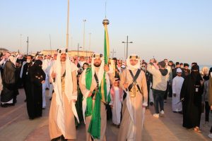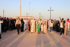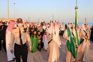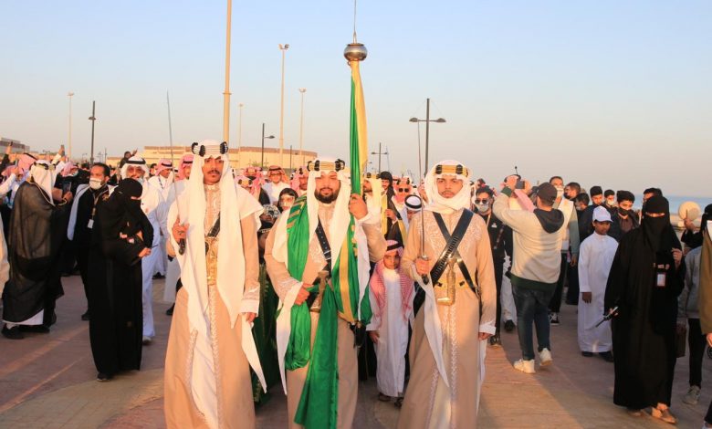 شاهد .. #مسيرة_التأسيس تتجول بفعاليات #يوم_التاسيس بـكورنيش الفناتير بـ #الجبيل_الصناعية