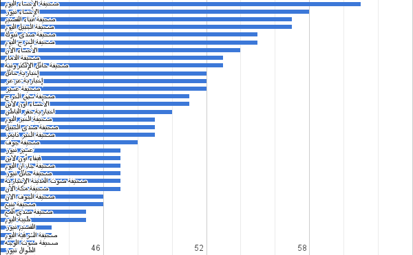 وبالإعتماد على موقع ترتيب http://www.news-ksa.com/stats/ index.html الذي يقوم بترتيب أبرز الصحف السعودية قمنا بقياس تأثير أكثر من 30 صحيفة إقليمية تهتم بتغطية أخبار منطقة محددة وجاءت صحيفة الجبيل اليوم في المرتبة الرابع ب٥٧ نقطة .