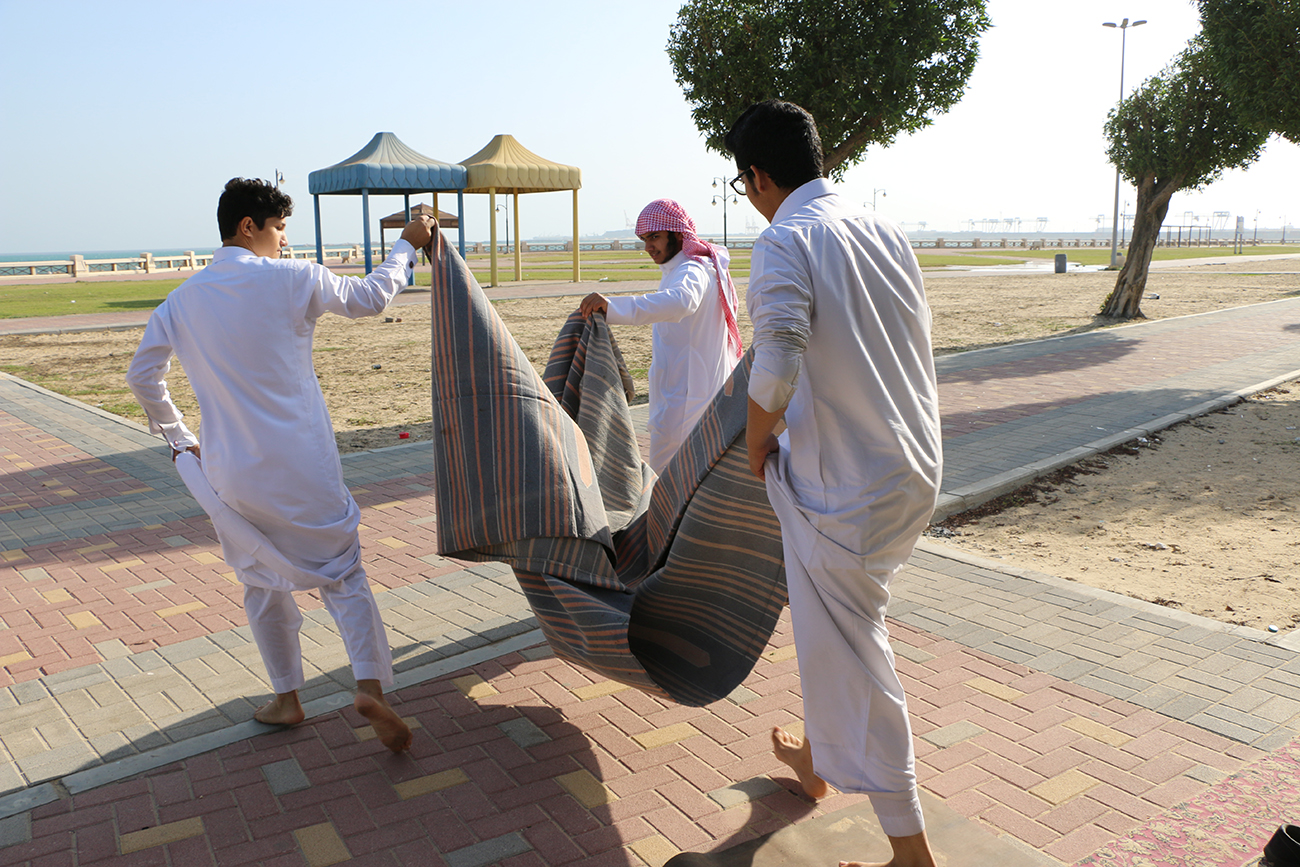 طلاب مدرسة الملك فهد الثانوية يقومون بتنظيف مصليات كورنيش #الجبيل