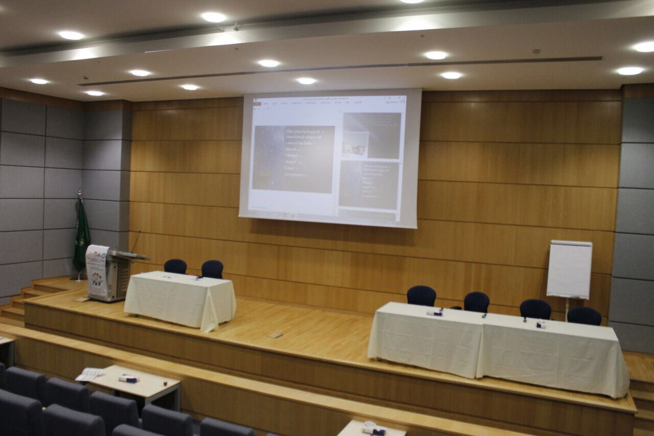 حيث كانت الجلسة الاولى هي المصادر المتوفرة لمرضى الأورام وألقاها رئيس الجلسة د.عبد الرحمن الشهري