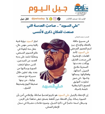 إن الاحتفاء بالزميل علي السويد هو تكريم لعدسةٍ صادقة، ولإعلاميٍ آمن بأن الصورة رسالة، وبأن اللحظة حين تُلتقط بصدق تبقى شاهدًا على الزمن. وسيظل اسمه حاضرًا في ذاكرة الجبيل، وصوره علامات مضيئة في سجل الإعلام المحلي.