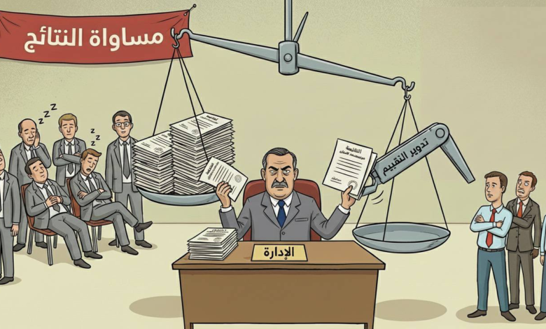 المشكلة الجوهرية في هذا النموذج أنه يخلط بين عدالة الفرص ومساواة النتائج. فالفرص حق للجميع، أما النتائج فمرتبطة بما قُدِّم فعليًا. وعندما يُتجاهل هذا الفرق، يتحول التميّز إلى عبء إداري يجب تسويته، ويُطلب من المتفوّق أن يتنازل ضمنيًا عن استحقاقه حفاظًا على الانسجام العام. عند هذه النقطة، تُفرَّغ عملية التقييم من مضمونها المهني، وتُقدَّم إدارة المشاعر على قياس الأداء.