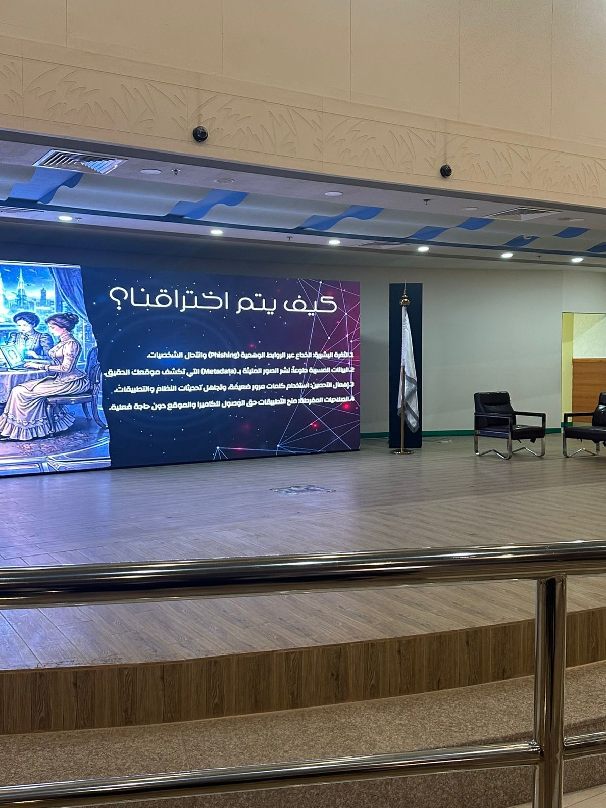 وشهدت الفعالية مشاركة الموظفة البتول عيضة من شركة ساتورب، حيث قدمت كلمة توعوية قيّمة تناولت فيها مخاطر الاختراقات الإلكترونية، والتنبيه على خطورة التهاون في حماية البيانات والمعلومات.