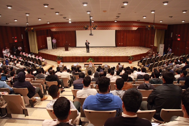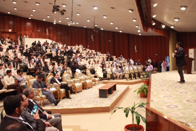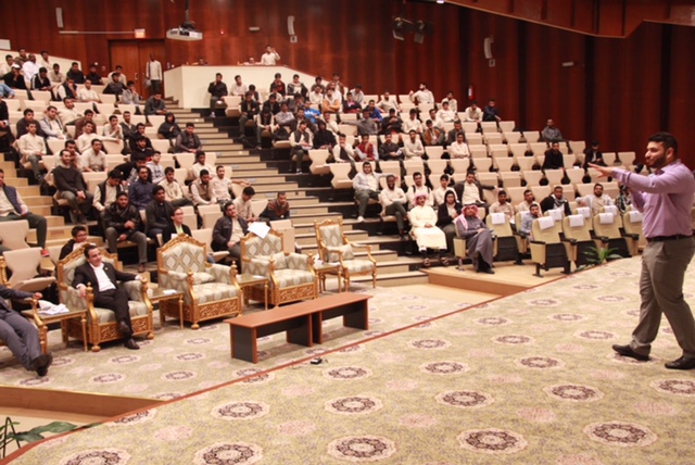 بعد ذلك ألقى  بطل العالم في الالقاء والخطابة لعام 2015 المهندس محمد القحطاني محاضرة بعنوان