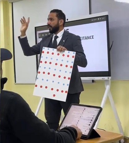 الفيزياء هي الطبيعة، والطبيعة ليست مادة صعبة وأنا أؤمن أن تبسيط هذه المادة يبدأ من ربطها بحياة الطالب اليومية. فالفيزياء ليست معادلات جامدة أو نظريات بعيدة عن الواقع، بل هي علم يفسر ما نراه ونعيشه في كل لحظة، من حركة السيارة، إلى سقوط المطر، إلى استخدام الهاتف الذكي. لذلك أحرص دائمًا على تحويل المفاهيم المجردة إلى تطبيقات ملموسة عبر التجارب العملية، والمشاهدات البصرية، وربط الدروس بظواهر مألوفة تجعل الطالب يشعر أن الفيزياء “تتحدث لغته”. كما أُشجّع الطلبة على الاستكشاف والتساؤل بدل الحفظ والتلقين، لأن الفهم الحقيقي للفيزياء يقوم على الفضول والعقلية الباحثة.