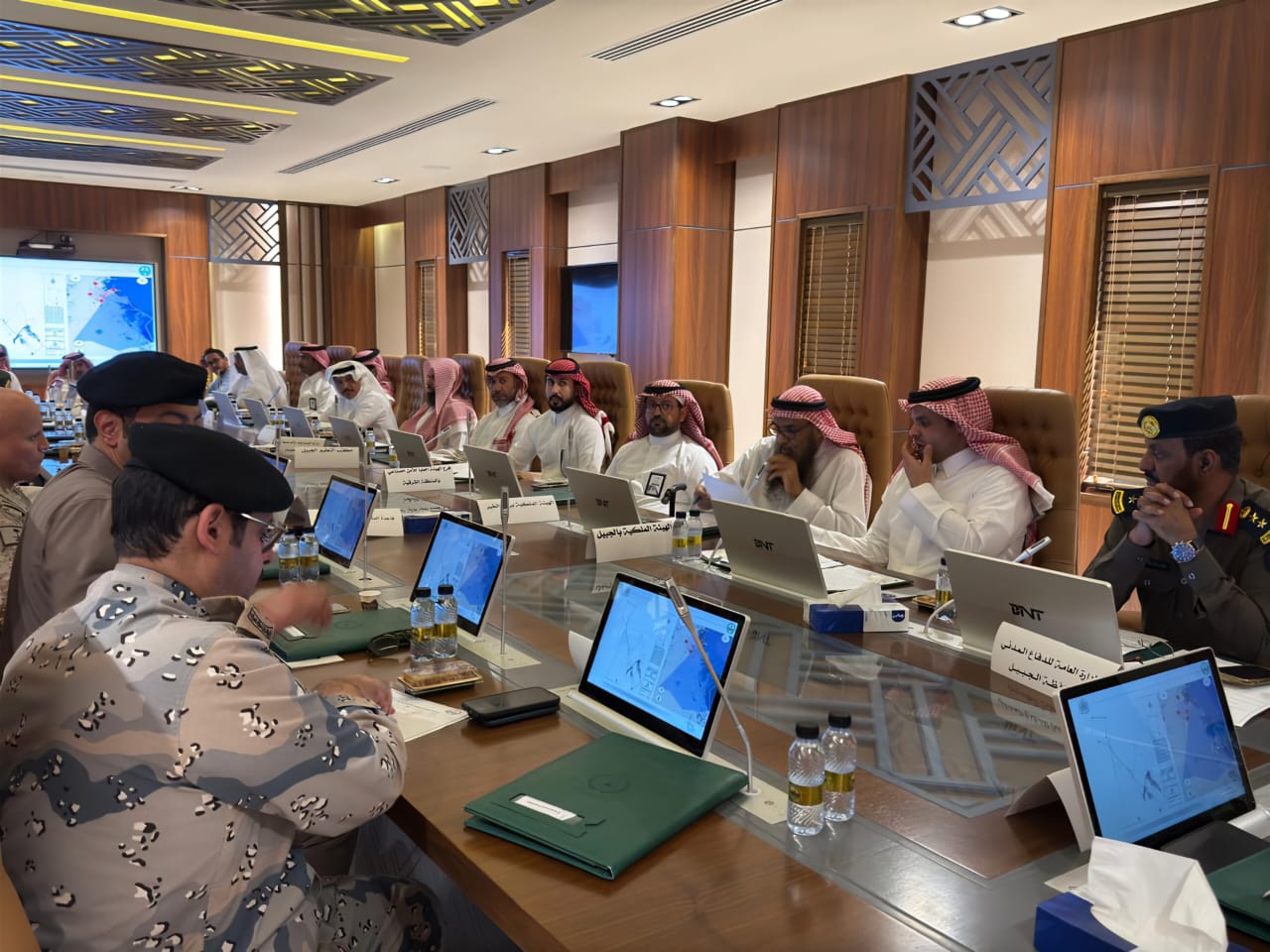 واستعرض الاجتماع عدداً من الموضوعات واتخاذ التوصيات اللازمة حيالها، ومناقشة التأكيد على جاهزية كافة الجهات الحكومية والخاصة المعنية بتنفيذ أعمال الدفاع المدني في حالات الكوارث والطوارئ، والتأكيد على تطبيق اشتراطات السلامة والوقاية من الحريق في المنشآت، ومتابعة سير الاستعدادات التي تقوم بها الجهات المعنية لمواجهة مخاطر الأمطار والسيول، ورصد مراحل الإنجاز في تنفيذ مشاريع تصريف مياه الأمطار بأحياء الجبيل، والحث على مواصلة تنسيق الجهود بين أعضاء اللجنة لسلامة الأرواح والممتلكات في الجبيل.