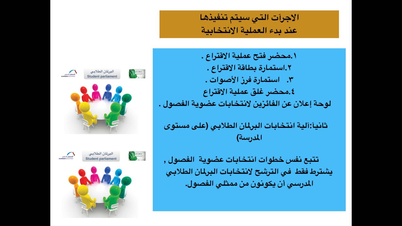 مدارس الحصان بالجبيل الصناعية تنتخب البرلمان الطلابي