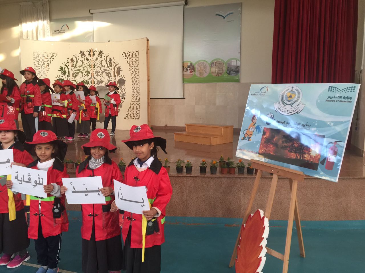 تحت شعار (يدا بيد للوقاية من المخاطر) تم تفعيل برنامج إذاعي للاحتفاء باليوم العالمي للدفاع المدني في يوم الأربعاء الماضي من إعداد المعلمة روان الشمري والمعلمة ريم الشهري ومن تنفيذ طالبات الصف الثاني الابتدائي اشتمل البرنامج على اهم وسائل الأمان والسلامة الواجب اتخاذها للحيلوله دون وقوع الحوادث كما تم التطرق الى أهم أرقام هيئة الدفاع المدني الواجب معرفتها من قبل كل أفراد الأسرة وكما تم عرض أهم وسائل الوقاية من الحرائق والحوادث المنزلية .