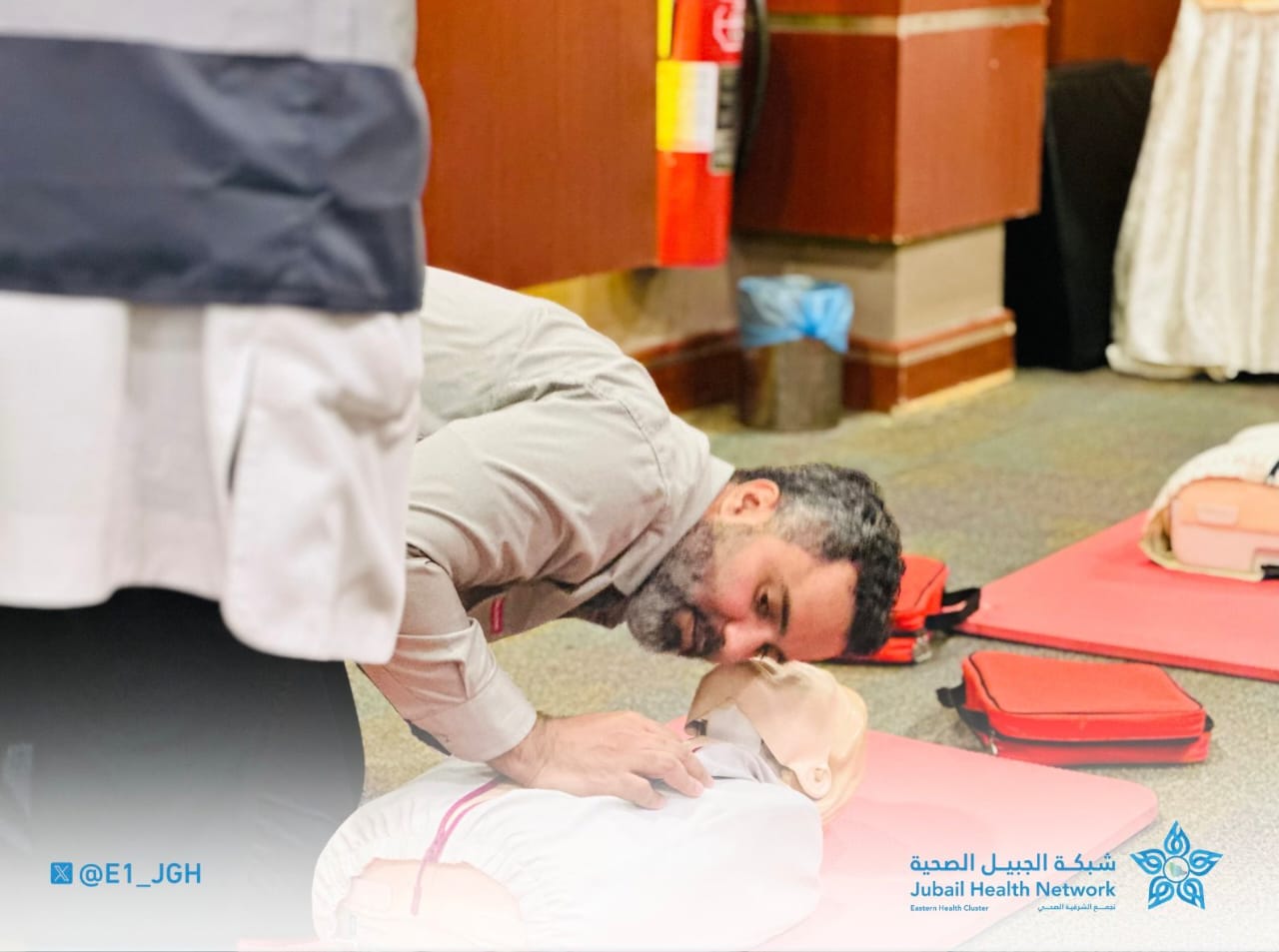 امتدادًا لبرنامج #المستجيب_الأول وتزامنًا مع #اليوم_العالمي_للغرق نُفّذت فعالية توعوية في شركة #ساسرف بهدف رفع الوعي بالإسعافات الأولية وتعزيز قدرة الموظفين على الاستجابة السريعة في الحالات الطارئة وذلك بدعم من #مستشفى_الجبيل_العام أحد مكونات #تجمع_الشرقية_الصحي.