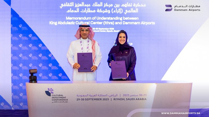 وأكد الرئيس التنفيذي لمطارات الدمام المهندس محمد بن علي الحسني، أن هذه الاتفاقية تأتي انسجامًا مع دور مطارات الدمام في ربط العالم بالمملكة، وتقديم تجربة سفر متكاملة تتجاوز مفهوم النقل لتشمل الثقافة والمعرفة والإبداع، بما يتماشى مع مستهدفات رؤية المملكة 2030 من خلال تطوير مبادرات نوعية داخل مطار الملك فهد الدولي، تسهم في إثراء تجربة المسافرين عبر إبراز الهوية السعودية وإبقاء البعد الثقافي حاضرًا في تفاصيل الرحلة، من خلال فعاليات ومعارض فنية وعروض إبداعية، ومحتوى معرفي يسلّط الضوء على العمق الحضاري للمملكة.
