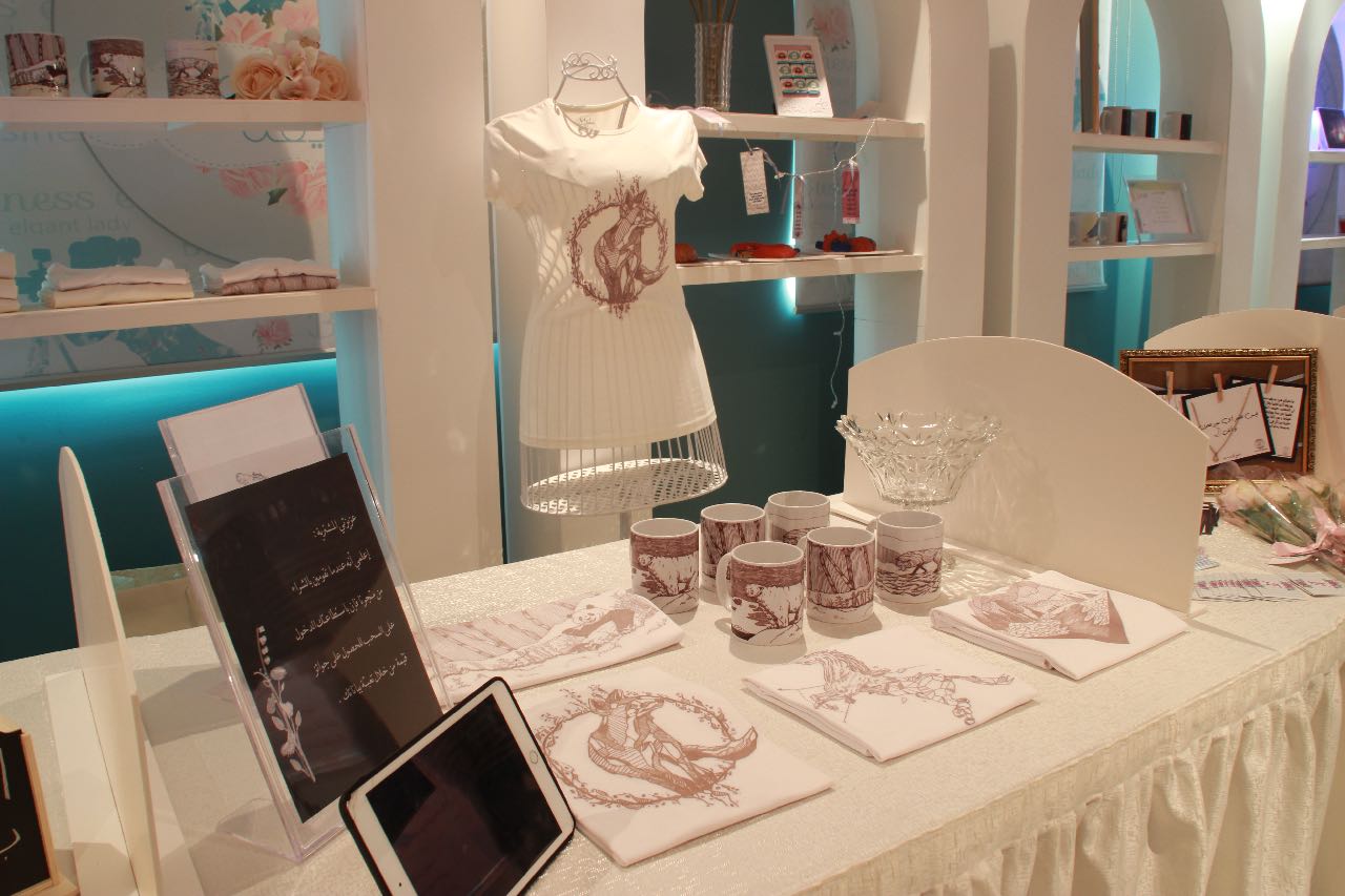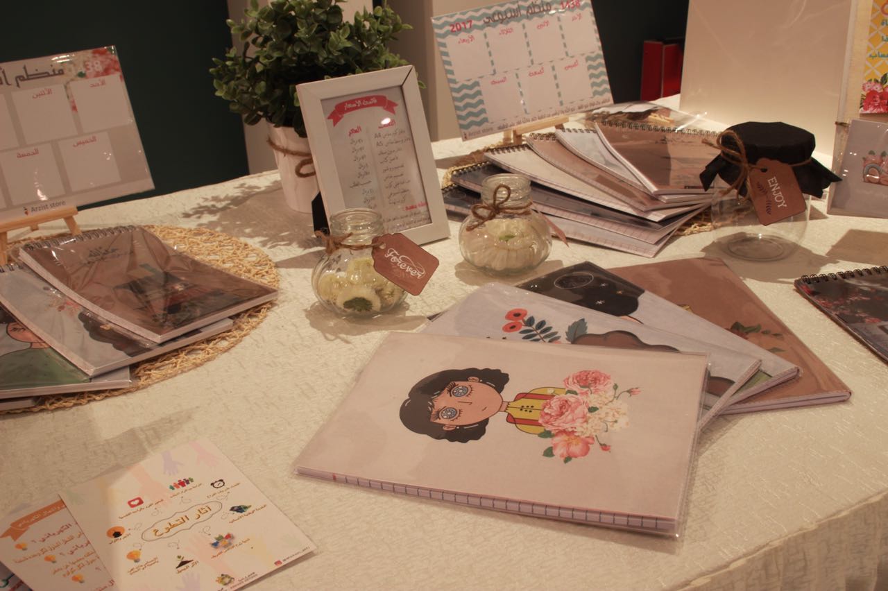 وتميز ركن التصميم للتاجرة رغد القناعي بتوظيف الرسومات وطباعتها على الدفاتر وتصميم الفواصل بمشروع (Arzist) .