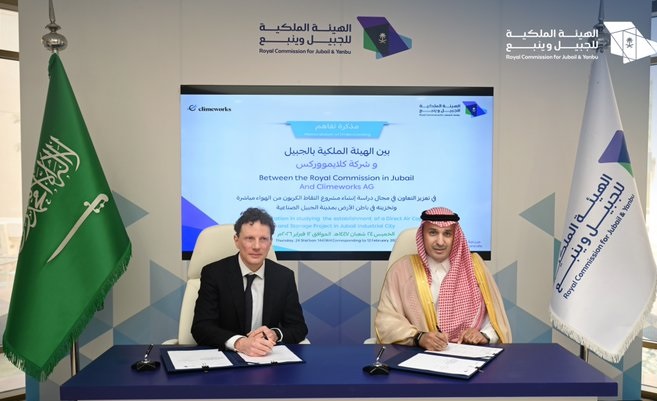وقعت الهيئة الملكية للجبيل وينبع مذكرة تفاهم مع شركة (كلايموركس)، لتعزيز التعاون في مجال دراسة إنشاء مشروع التقاط الكربون من الهواء مباشرة، وتخزينه في باطن الأرض.
