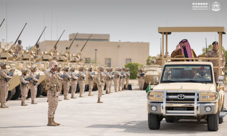 كما شاهد سموه عرضًا عسكريًا لقوات الحرس الوطني، شاركت به الآليات والعربات الحديثة المزودة بأحدث التقنيات العسكرية، التي أبرزت مدى جاهزيتهم، حاملين على عاتقهم ردع كل من تسول له نفسه المساس بأمن هذا الوطن الغالي.