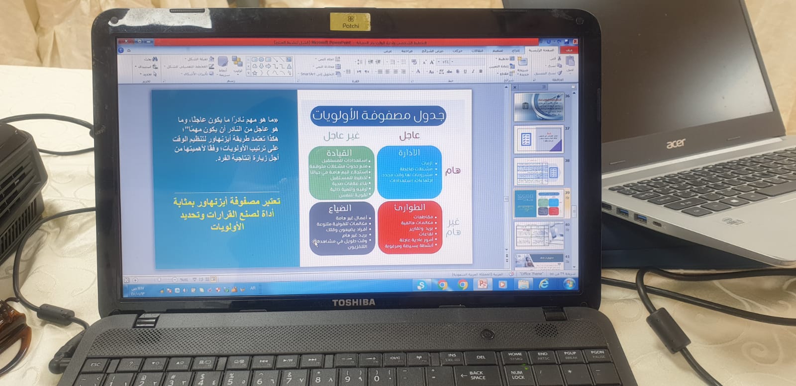 كما وضحت أهمية الوقت وكيفية استثماره وتطبيق مصفوفة آيزنهاور لصنع القرارات وتحديد الأولويات.