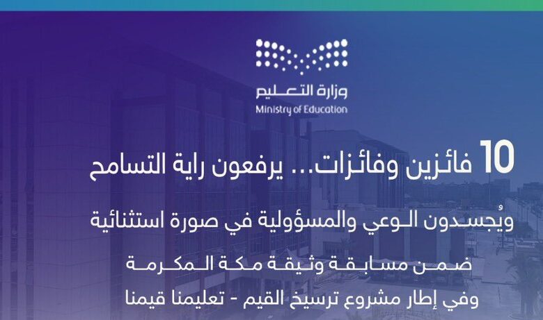 وقالت عبر حسابها على منصة “إكس”: 10 فائزين وفائزات… يرفعون راية التسامح، ويجسّدون الوعي والمسؤولية في أبهى حضور، ليشكّلوا منجزًا يليق برسالة القيم في تعليم الشرقية.