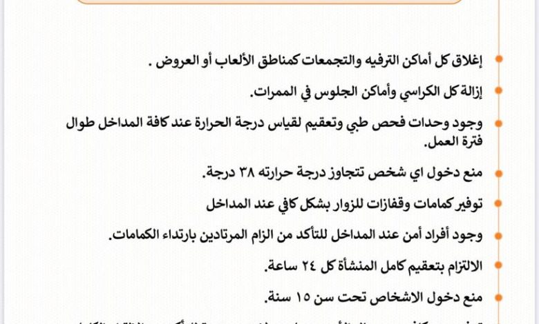 - منع دخول أي شخص تتجاوز درجة حرارته 38 درجة .