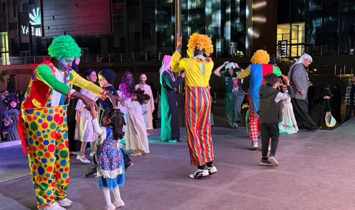 كما أضفت الفرقة الشعبية أجواءً تراثية مميزة من خلال العروض والأهازيج التقليدية، فيما قدّم المهرجون عروضًا ترفيهية تفاعلية أسهمت في رسم البسمة على وجوه الأطفال والعائلات الحاضرة.
