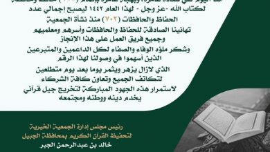 أعلنت الجمعية الخيرية لتحفيظ القرآن الكريم بمحافظة الجبيل، وصول عدد الحافظين لكتاب الله للعام 1442هـ لـ 117 حافظاً وحافظة,…