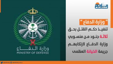تنفيذ حكم القتل بحق ثلاثة جنود من منسوبي وزارة الدفاع لارتكابهم جريمة الخيانة العظمى