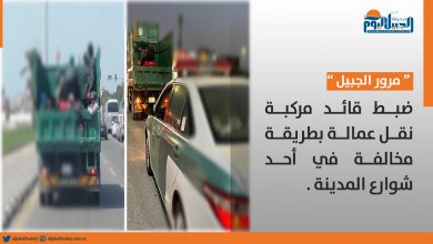 «مرور الجبيل» يضبط قائد مركبة نقل عمالة بطريقة مخالفة