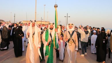 شاهد .. #مسيرة_التأسيس تتجول بفعاليات #يوم_التاسيس بـكورنيش الفناتير بـ #الجبيل_الصناعية