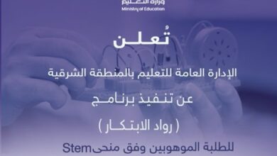 الجبيل – أعلنت الإدارة العامة للتعليم بالمنطقة الشرقية عن تنفيذ برنامج “رواد الابتكار” لطلبة المرحلة الابتدائية الموهوبين وفق منحى STEM…