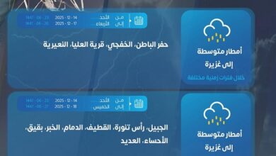 أمطار متوسطة إلى غزيرة على مدينة الدمام وعدد من محافظات المنطقة الشرقية ابتداءً من يوم غدٍ الأحد