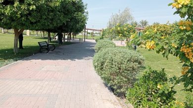 صيانة وترتيب المسطحات الخضراء في الكورنيش وحديقة السلام بمحافظة الجبيل