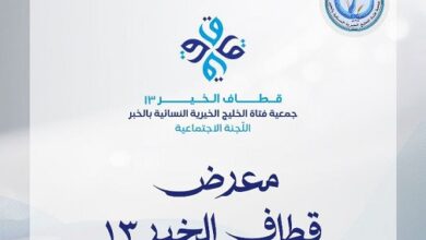 جمعية “فتاة الخليج” بـ الخبر تطلق معرض “قطاف الخير 13” الاثنين القادمالخبر – عالي الكناني برعاية كريمة من صاحبة السمو الأميرة عبير بنت فيصل بن تركي آل سعود، تطلق اللّجنة الاجتماعية… أكمل القراءة »