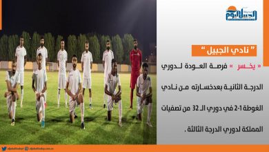 الجبيل اليوم | الجبيل فقد نادي الجبيل لكرة القدم فرصة العودة لدوري الدرجة الثانية بعد أن خسر مباراته من أمام…