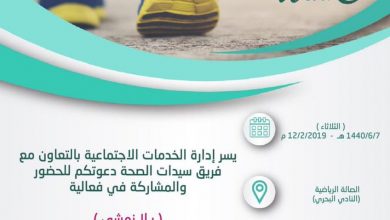 إيماناً منها بأهمية ممارسة الرياضة للجميع تدعوكم إدارة #الخدمات_الاجتماعية بالتعاون مع فريق #سيدات_الصحة للمشاركة في فعالية #يلا_نمشي الثلاثاء ٧ جمادى…