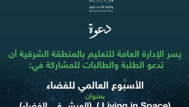 تعليم الشرقية يدعو الطلاب والطالبات في مختلف المراحل الدراسية للمشاركة في أسبوع الفضاء 2025