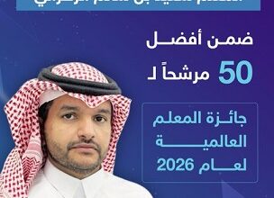 “سعيد الزهراني” معلم مدرسة المطرفية الابتدائية بمدينة الجبيل الصناعية ضمن قائمة أفضل 50 مرشحاً لجائزة المعلم العالمية