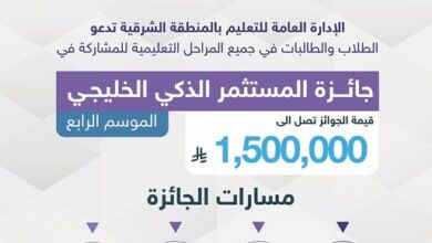تعليم الشرقية يدعو الطلاب والطالبات للمشاركة في جائزة المستثمر الذكي الخليجي