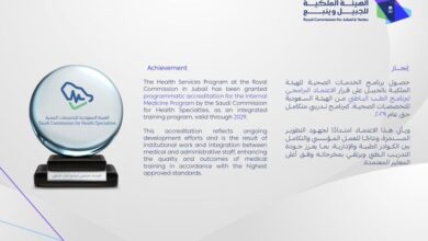 برنامج الخدمات الصحية لـ “ملكية الجبيل” يحصل على الاعتماد البرامجي لبرنامج الطب الباطني