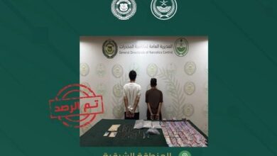 قبضت المديرية العامة لمكافحة المخدرات على مواطنين بالمنطقة الشرقية لترويجهما (4.7) كيلوجرامات من مادة الحشيش المخدر (2,167) قرصًا من مادة…