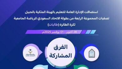استضافت الهيئة الملكية بالجبيل ممثلة بالإدارة العامة للتعليم، التصفيات المؤهلة للمجموعة الرابعة من بطولة الاتحاد السعودي للرياضة الجامعية لكرة الطائرة…