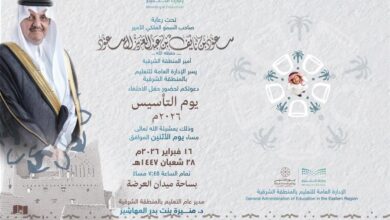تعليم الشرقية يحتفل بـ يوم التأسيس مساء الاثنين في ساحة ميدان العرضة بكورنيش الخبر