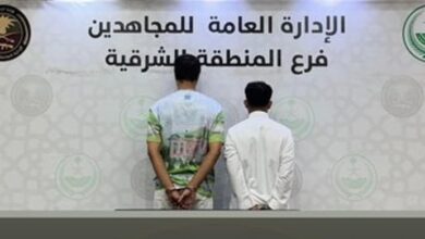 قبضت دوريات الإدارة العامة للمجاهدين بالمنطقة الشرقية، على مواطنين لترويجهما مادة الميثامفيتامين المخدر (الشبو)، وجرى إيقافهما واتخاذ الإجراءات النظامية بحقهما،…